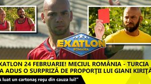 Exatlon 24 februarie! ”Umit Karan este un foarte bun fotbalist şi căpitan, bravo.”, i-a spus Giani Kiriţă, iar replica lui Umit n-a întârziat să apară. ”Mulţumesc la fel. Şi tu ai fost un fotbalist foarte bun.