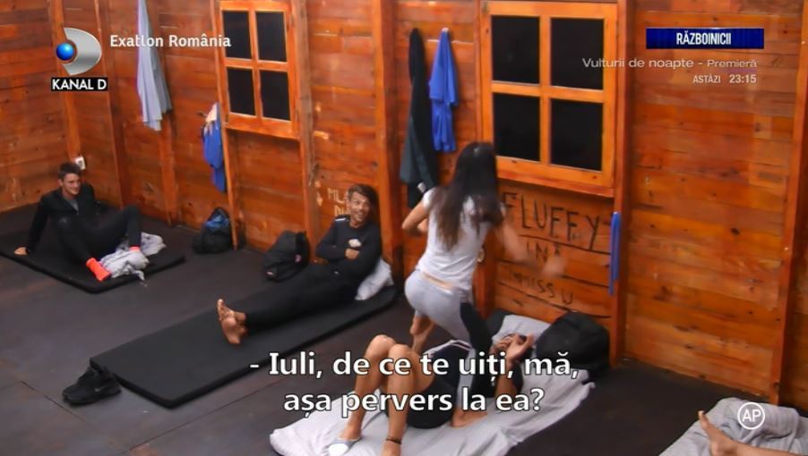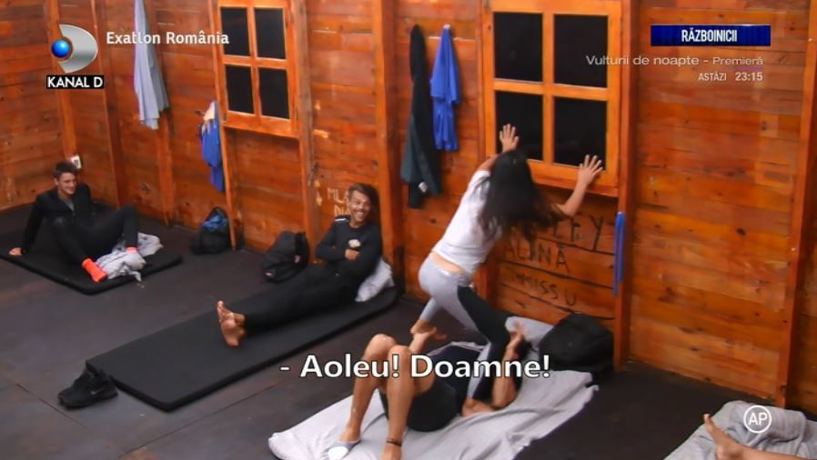 In momentul in care ea s-a sprijinit de perete si a fost aproape sa cada, toti Razboincii au izbuncit in ras. La un moment dat Simi a reusit sa urce pe palmele lui Alin.