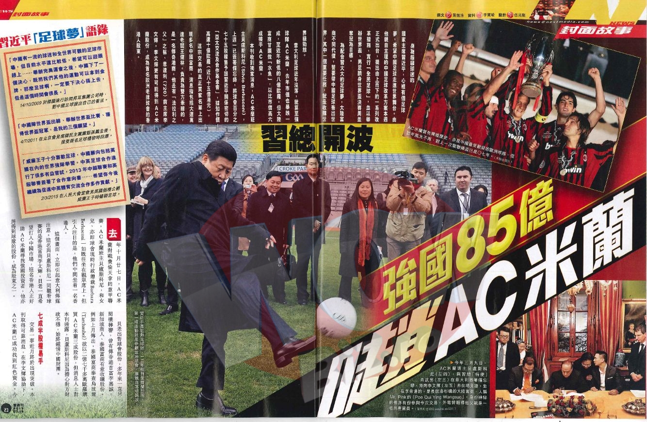 Publicatia Next Magazine din Hong Kong scrie despre preluarea lui AC Milan a unui grup de miliardari chinezi apropiati ai presedintelui Xi Jinping, care apare in imagini lovind o minge de fotbal