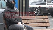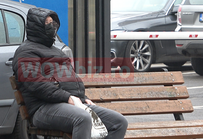 EXCLUSIV! „Busu” s-a blindat pentru iarnă! N-a așteptat limuzina ca să scape de frigul de afară, ci s-a cuibărit pe o bancă din stație de tramvai. Imagini de colecție