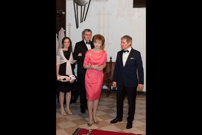 Evenimentul, ce s-a desfasurat sambata seara, a fost prilejuit de aniversarea a 67 de ani ai Principesei. Cu aceasta ocazie, Valerie Ciolos a ales sa poarte o rochita neagra, la care a accesorizat un sal delicat.