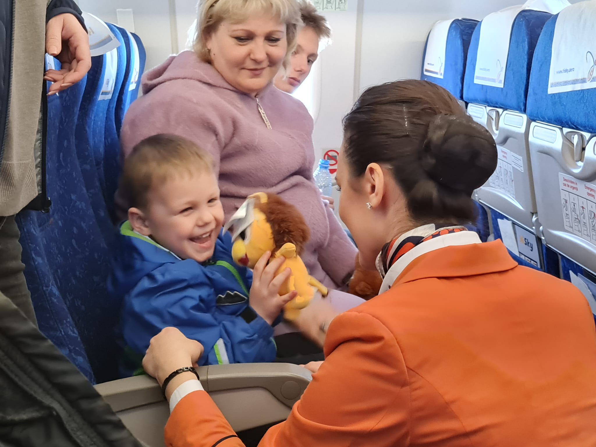 „Ar trebui să-i vedeți cât de fericiți sunt atunci când se așază în scaunele lor. Au primit și jucării înainte de decolare și s-au distrat împreună. Parcă uită pentru un moment de război și se simt din nou copii”, a spus emoționată Adelina Toncean.
