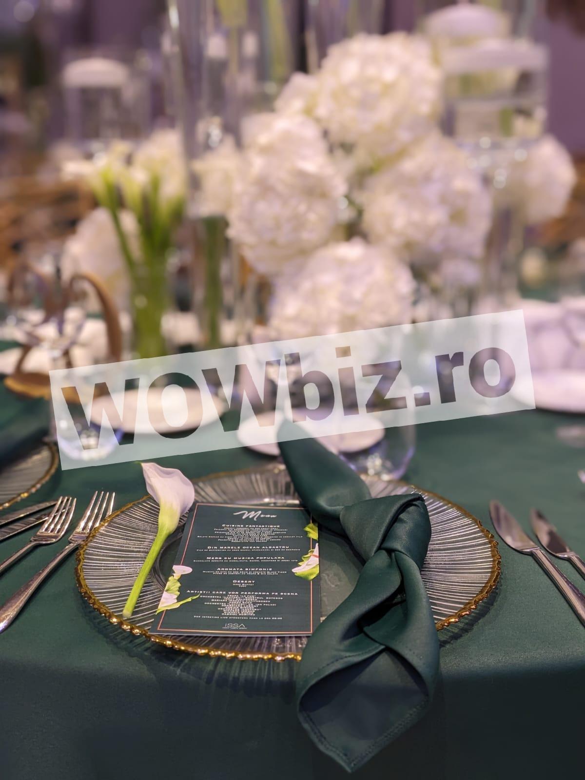 Localul de lux este plin de flori albe, iar mesele sunt, de asemena, decorate în același stil elegant, cu sticlă și ornamente naturale cu mult verde și alb. Echipa WOWbiz.ro se află la fața locului, de acolo de unde au surprins primele imagini cu localul de lux în care va avea loc petrecerea mult așteptată!