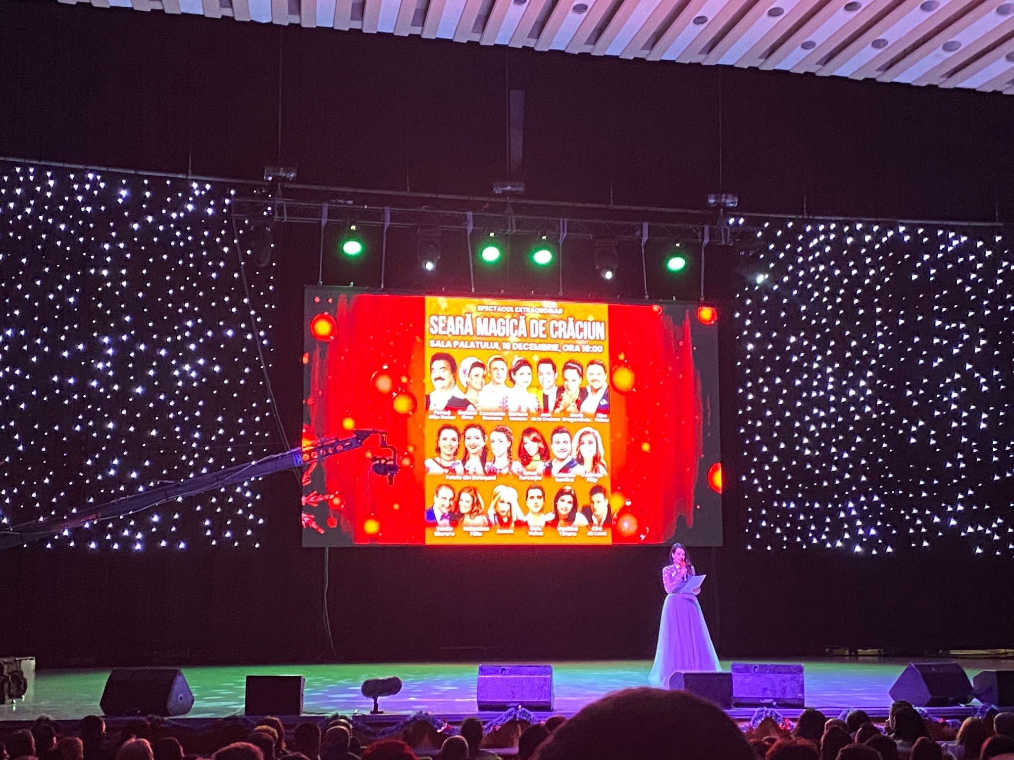 ”Spectacolul acesta deși se numeste atât de frumos „o seara magică de Crăciun” este dedicat celor care au strălucit pe această scenă. Și pe care dumneavoastră i-ați aplaudat în zeci de spectacole, Petrică Mîțu Stoian și Benone Sinulescu”, a spus actrița.