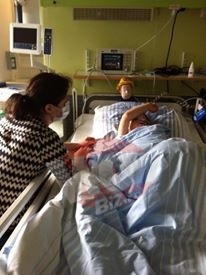 Micutul este vegheat de catre mama sa, sora Elenei HueanuTotul a inceput in primele zile ale lunii iunie, cand nepotelul ei in varsta de sase ani a avut unele probleme de sanatate si a ajuns la spital. “Voma tot ceea ce manca, avea febra si o stare de rau general. Sora mea a mers cu el la spital, in Germania, unde locuieste si, initial, i s-a administrat un tratament usor. Pentru ca problemele au persistat, a doua zi, copilul a ajuns din nou la medic. Din acel moment a inceput calvarul nostru. I s-au facut analize medicale de sange si asa i s-a descoperit leucemia. A fost un soc pentru noi toti, pana atunci el fusese un copil energic si sanatos tun. Boala a avut insa o evolutie galopanta si in scurt timp a intrat in coma si vreme de doua zile am crezut ca il pierdem. Parea ireal ceea ce se intampla in familia mea”, a povestit cu lacrimi in ochi si vocea innodata de emotii, Elena Hueanu.