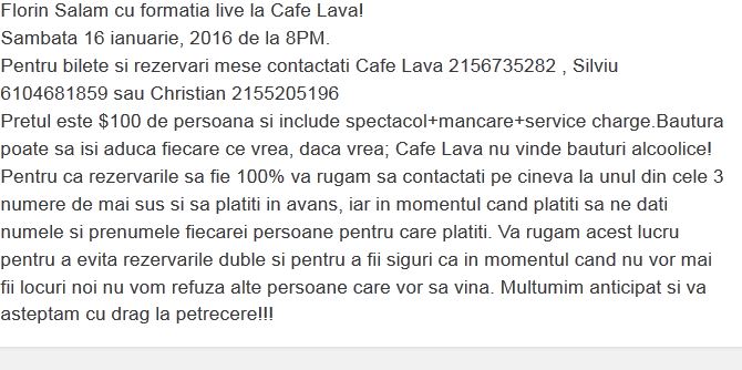 La New York, lucrurile au fost insa si mai dramatice. Circa 300 de romani platisera cate 110 dolari pentru a fi in sala la concertul lui Salam care urma sa se desfasoare sambata seara (ulterior, show-ul a fost mutat duminica).