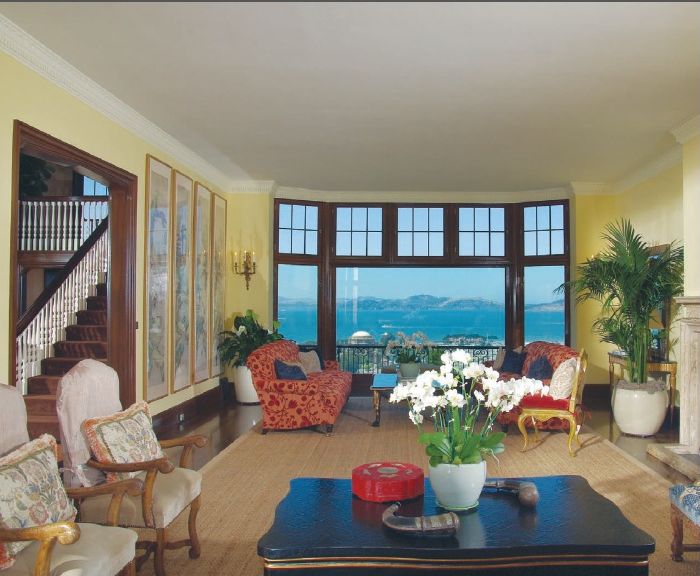 Cu mai multe terase care au vedere spre Golful San Francisco si celebrul pod Golden Gate, casa este cu adevarat impresionanta, avand o suprafata totala de 1.000