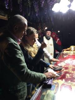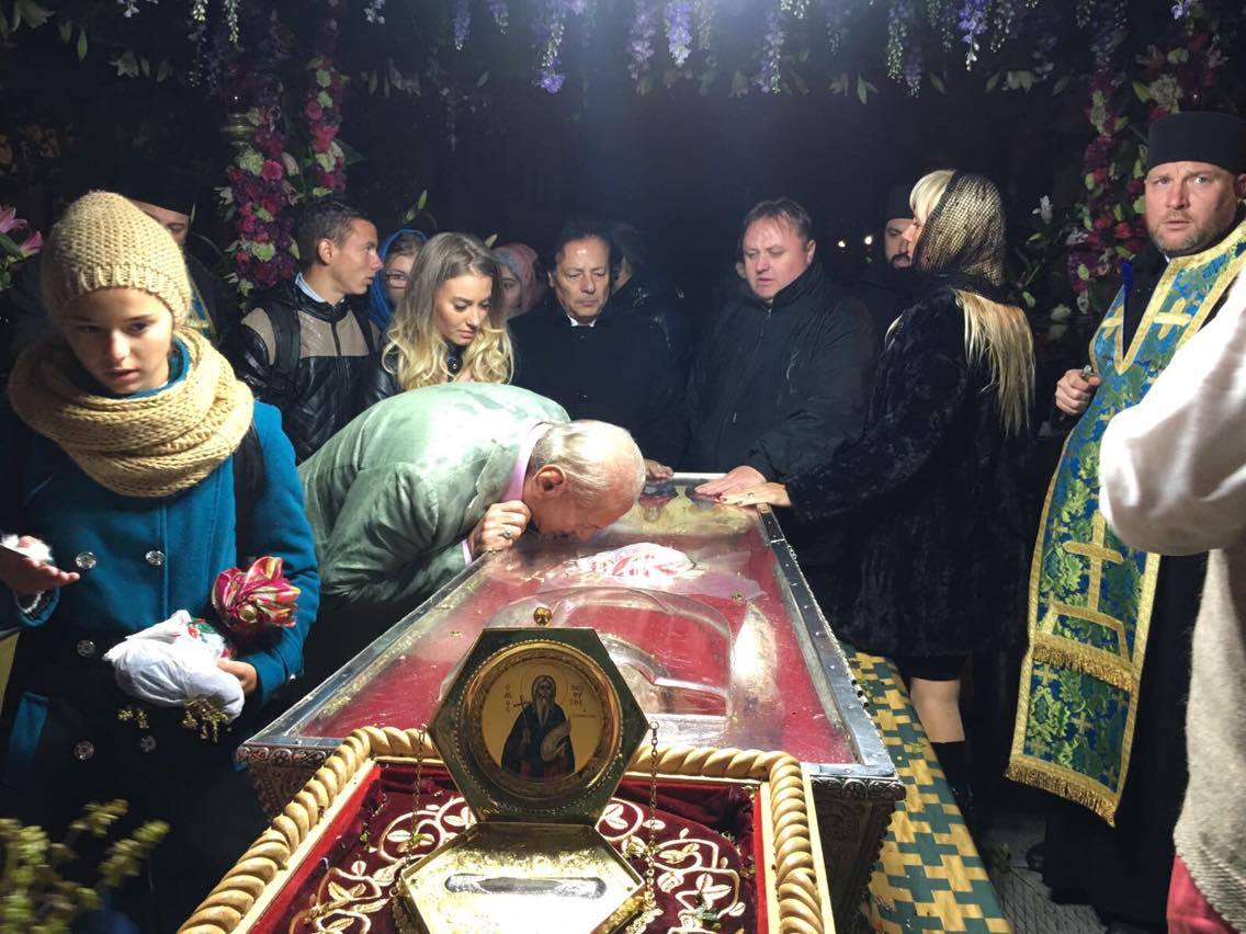 Maestrul a ajuns la fata locului, impreuna cu soprana Irina Baiant, italianul Francesco Napoli sau managerul Radu Groza, si a fost extrem de impresionat! Zamfir a stat o jumatate de ora la moaste, s-a inchinat, apoi a pupat racla, avand practic lacrimi in ochi! Surprinzator, si mai emotionat a fost naistul in momentul in care preotul Andrei Zavlog a dorit sa-i spuna cateva cuvinte.
