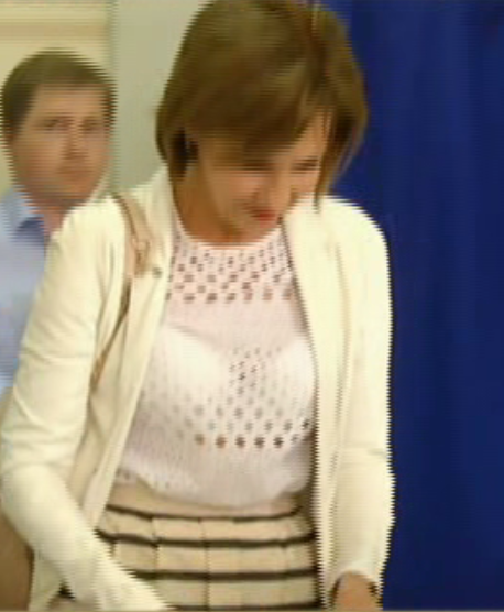 novalueIn cazul lui Carmen Iohannis, comentariile sunt si mai dure. “Fusta este mult prea scurta, in primul rand pentru postura doamnei Iohannis si in al doilea rand pentru varsta pe care o are. Din pacate, alegerea unui top perforat nu salveaza cu nimic situatia atata timp cat este unul la baza gatului si o scurteaza si mai mult, ba da si senzatia de dreptunghi. In niciun caz nu se combina aceste doua piese cu sacou, cu atat mai putin cu unul alb. Daca aceasta zona este iconica pentru case de moda precum Ralph Lauren si cele care lucreaza echipament sportiv pentru Polo, iata ca nu intotdeauna producatorii locali reusesc un produs care sa se ridice la standardele impuse si cu atat mai mult la un styling adecvat. Senzatia generala este aceea de tinuta incropita in ultimul moment. Din pacate, si alegerea sandalelor cu toc foarte mic este iarasi total nepotrivita. O sefa niciodata nu se poarta in acest fel. Ea da aici senzatia de invatatoare sau profesoara, ceea ce pana la urma si este si nu ca ar fi un lucru rau, numai ca, in momentul in care reprezinti presedintele, esti sotia sefului statului, prima doamna, luati-o cum vreti, iar protocolul impunea alegerea unei tinute care sa evidentieze acest lucru si nu a unei tinute care sa evidentieze ideea de derizoriu si de incropit in ultimul moment, nu te poti imbraca precum un cadru didactic. Daca ar fi putut fi ceva care sa salveze acest ansamblu ar fi fost coafura, un coc spaniol la spate, foarte mic, care ar fi organizat cumva intreaga tinuta. De asemenea, nu trebuia sa ii fie frica de accesorii, acestea putand echilibra o vestimentatie nefericita cum este cazul de fata. O pereche de cercei, nu foarte masivi neaparat, dar cu putina personalitate, ar fi schimbat radical situatia”, a mentionat Iulia.