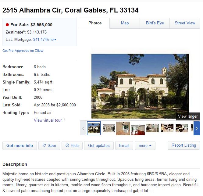 Adi Mutu nu se va mai relaxa in Miami Vila lui Mutu din Alhambra Circle este o adevarata bijuterie arhitectonica, ridicata in 2006 si pe care romanul a achizitionat-o impreuna cu sotia lui, Consuelo, doi ani mai tarziu. Pretul pe care Mutu il cere pentru acest imobil este de aproape 3.000.000 de dolari, cu 400.000 de dolari mai mult decat pretul de achizitie.