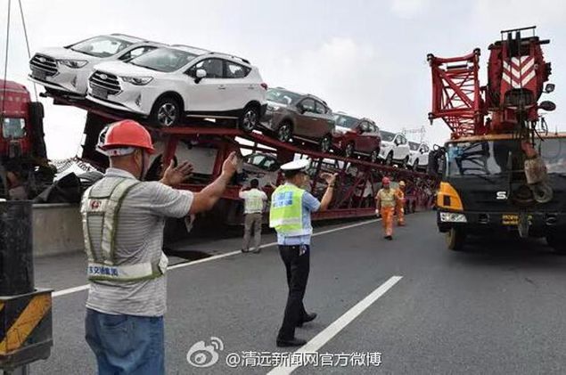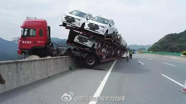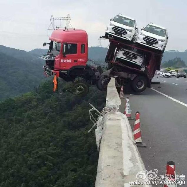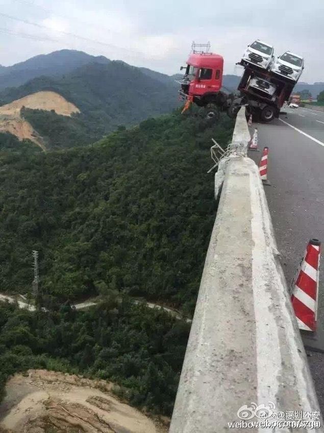 Mare tragedie ce a fost pe cale sa se intample in China. Soferul unui camion care transporta peste 20 de masini noi de la fabrica de automobile catre reprezentanta auto a fost la un pas de moarte. Barbatul a pierdut controlul volanului si a sarit cu camionul peste parapetul din beton al drumului.