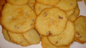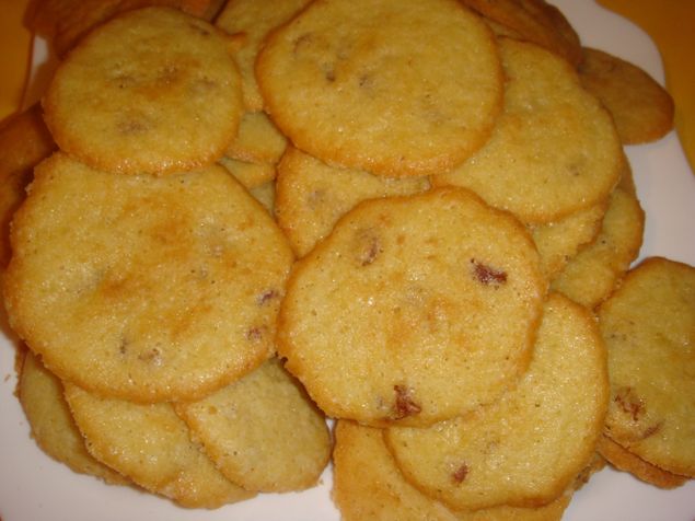 3 oua, 300 g zahar, 300 g margarina, 300 g faina, 100 g stafide, 1 pliculet zahar vanilat, esenta de rom.