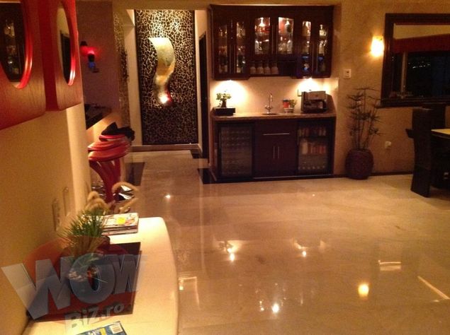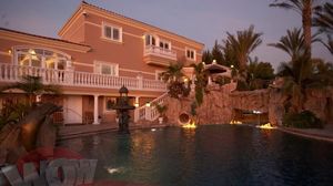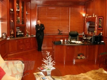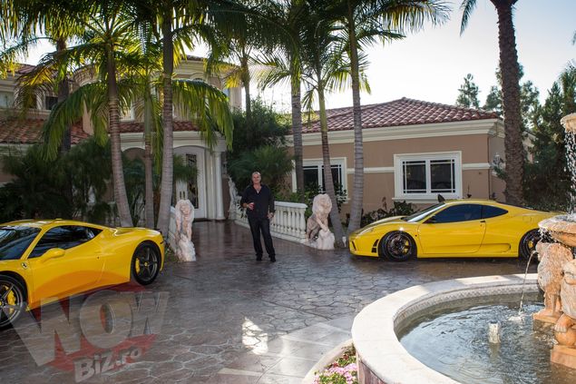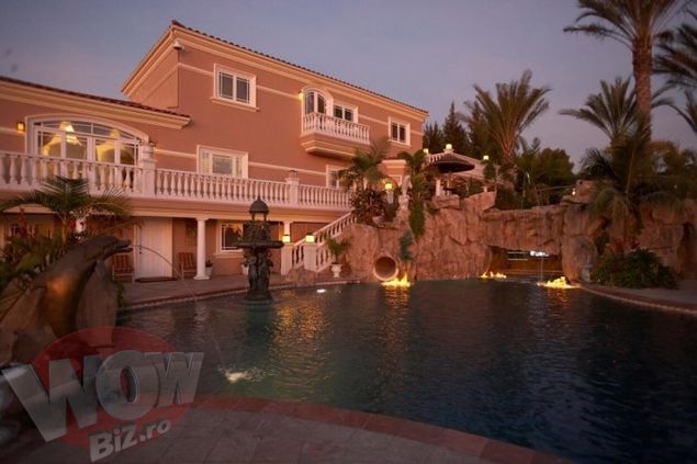Milionarul are o casa la care multi doar viseaza, cu mobilier de cea mai buna calitate si o piscina de toata splendoarea in spatele luxoasei vile.