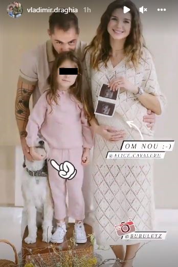 Alături de fotografia cu întreaga familie, acolo unde sunt surprinși cei doi părinți cu fiica lor cea mare, Zora, dar și patrupedul familiei, Vladimir Drăghia a scris în descrierea postării un mesaj emoționant, spunându-le fanilor din mediul online că el și partenera sa vor avea încă un copil.