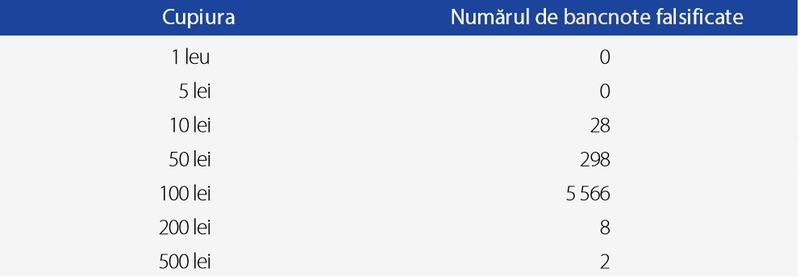 Dintre acestea, 5.566 erau bancnote de 100 lei. La distanță mare se află cele de 50 de lei cu 298 false, iar pe al treilea loc cele de 10 lei.