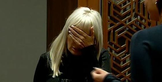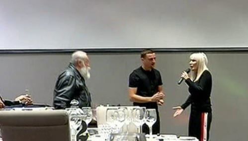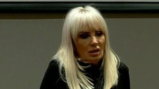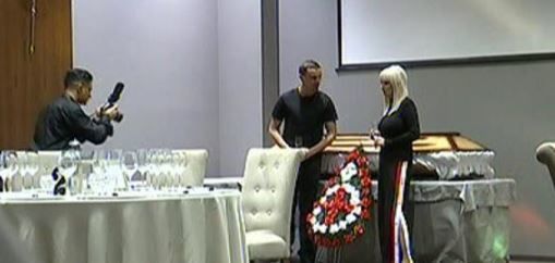 Vizibil iritata, in momentul in care a aflat ca este un priveghi si nu o aniversare, asa cum stia ea, Daniela Gyorfi si-a luat prietenul la rost.