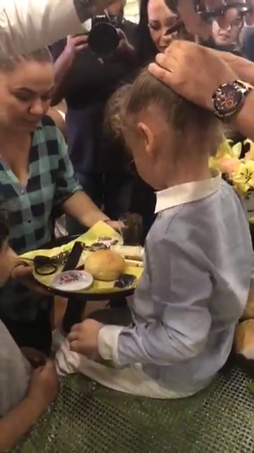 Ulterior, tot Catalin a fost cel i-a taiat motul pustiului, in cadrul unui moment care a avut loc la petrecerea ce a urmat si tot el a reusit sa il convinga pe baietel sa ia trei lucrusoare de pe tavita, asa cum cer datinile.