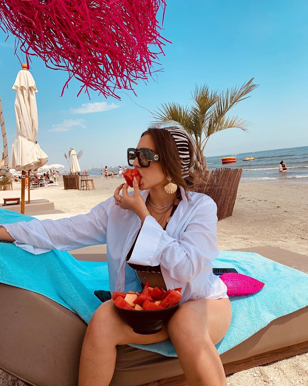 Cea mai apreciată poza a fost aceea în care Alexandra a apărut îmbrăcată într-o bluză cu imprimeu ce imită pielea de leopard. Într-o altă fotografie, Alexandra a purtat o cămașă cu nasturi descheiați, fără să poarte sutien. Ea s-a fotografiat și la plajă, în timp ce stătea pe șezlong și savura câteva bucăți de pepene roșu.