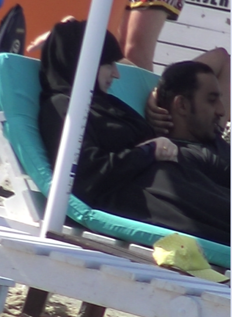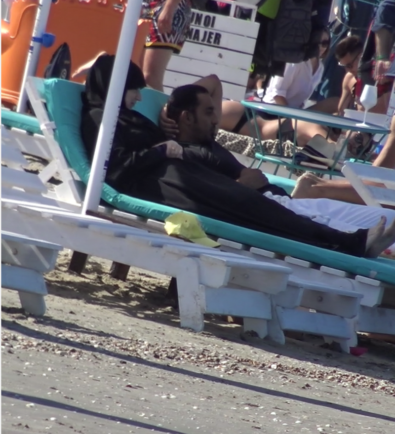 Romanii nu prea sunt obisnuiti cu astfel de imagini. Sa vezi pe o plaja din Mamaia, la 40 de grade celsius, un cuplu de musulmani imbracati in negru complet din cap pana in picioare, pai cu siguranta iti atrage atentia fara sa vrei. Printre femei ce faceau topless si isi expuneau trupurile la soare si barbati la bustul gol, se putea observa pe sezlong si doi soti,de origine araba, ce se relaxau la soare fara sa le pese de nimeni din jur. Pentru ca religia nu le permite sa-si arate trupurile in public, cei doi musulmani au stat la soare imbracati din cap pana-n picioare.