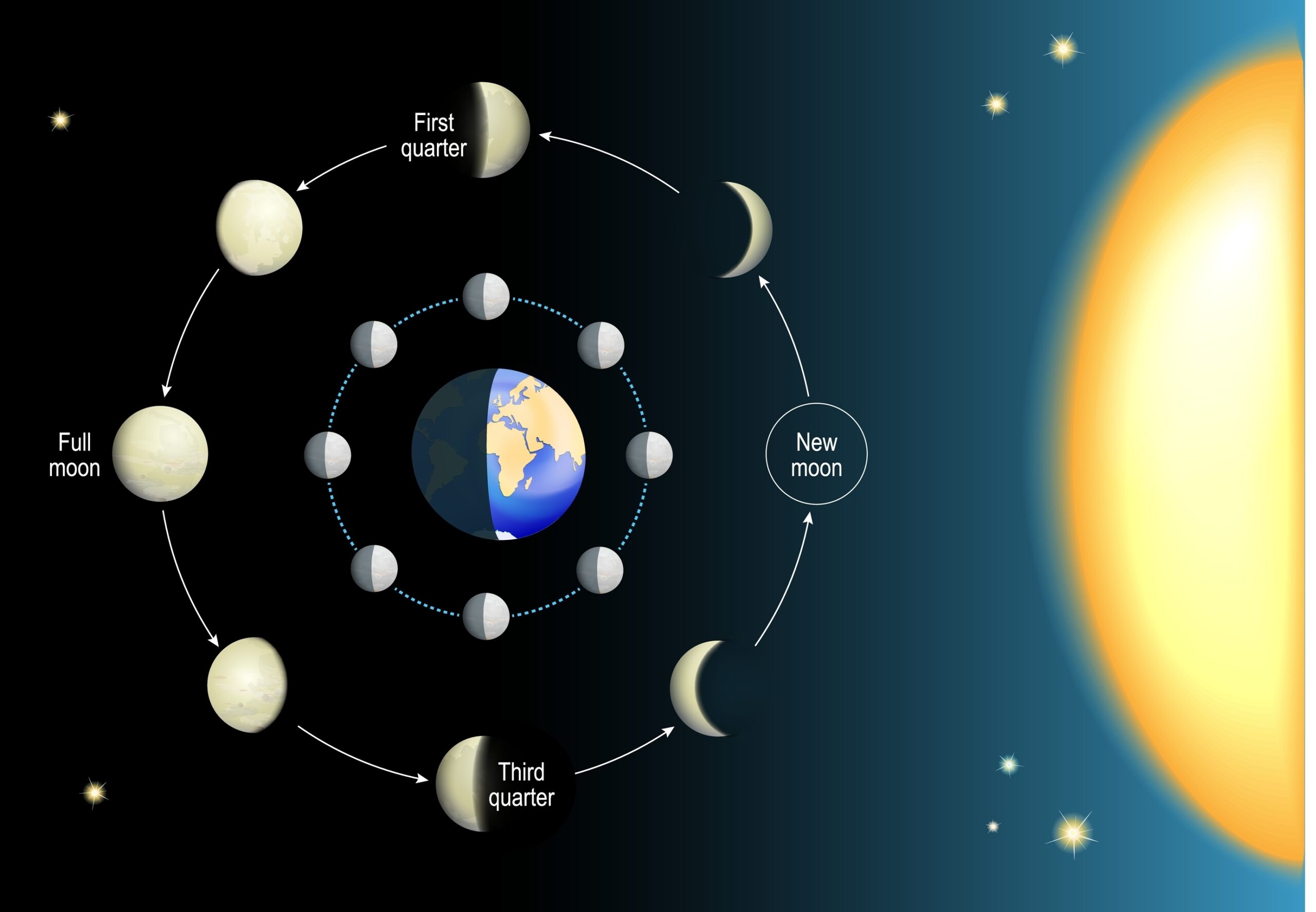 Fazele lunii mai 2024. Perioada sinodică se repetă la 29,5 zile