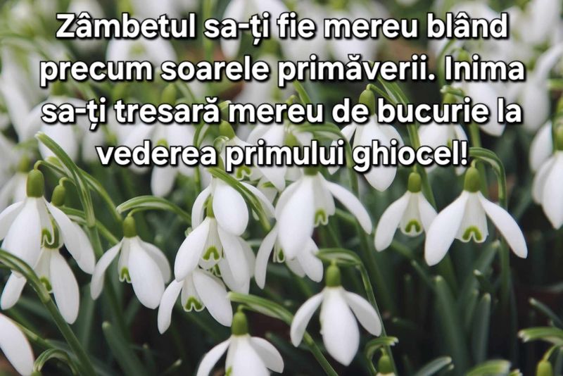 „De 1 martie, magia primăverii să te conducă într-o lume fascinantă, unde soarele va fi mereu pe cer, iar ghioceii nu vor dispărea niciodată!”