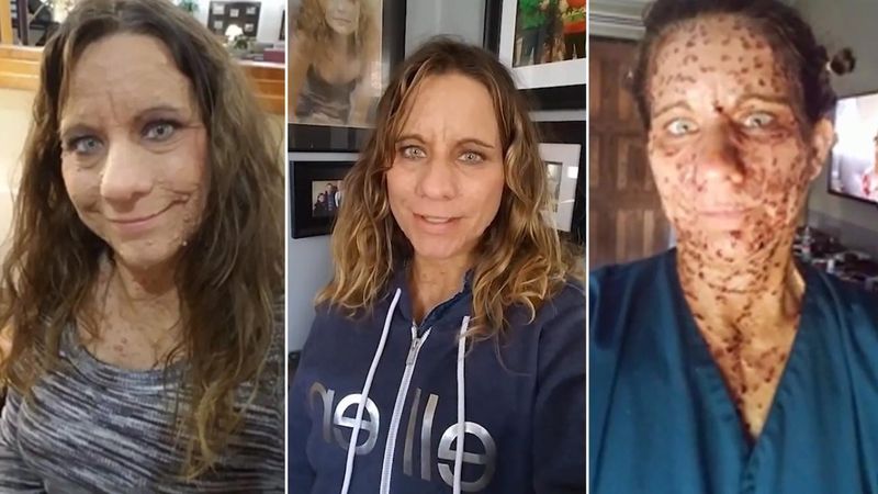 Dupa ce a nascut, femeia originara din Indiana s-a trezit pe corpul ei cu mii de umflaturi, inclusiv pe fata.