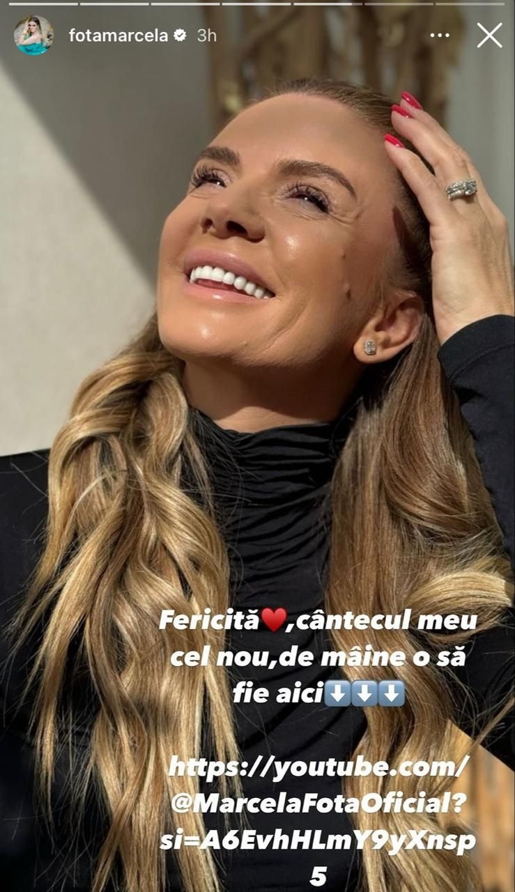 „Fericită, cântecul meu cel nou, de mâine o să fie aici”, a scris Marcela Fota în mediul online, cu numai câteva ore în urmă.