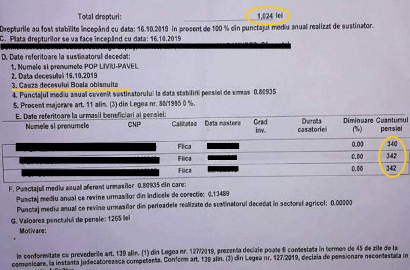 Pensia de urmaș pentru fiecare fată este de doar 340 de lei, o sumă nedemnă, dar singura pe care statul român este dispus să o acorde, potrivit legii.
