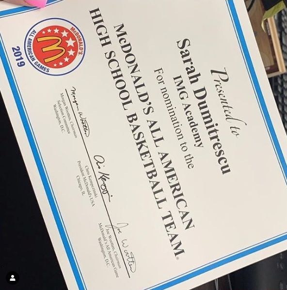 Încă o dovadă că fiica Anamariei Prodan i-a cucerit pe americani este aceea că, în urma prestaţiilor sale, Sarah a fost nominalizată să participe la McDonald's All-American Game, la finalul lui martie, acolo unde vor fi prezenţi cei mai buni tineri baschetbalişti din SUA şi Canada. Anamaria Podan a prezentat scrisoarea de convocare a lui Sarah şi a postat: “Sunt mândră de Sarah, fiica mea care a fost nominalizată să participe la „McDonalds All-American Game”.