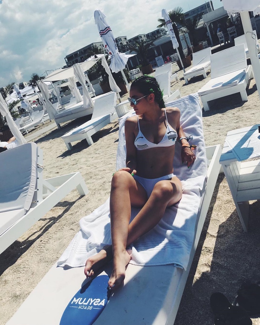 Alexia Eram, fiica Andreei Esca si a lui Alexandre Eram, a aparut la plaja intr-un costum de baie foarte sexy. Fiica Andreei Esca a atras toate privirile pe litoral.
