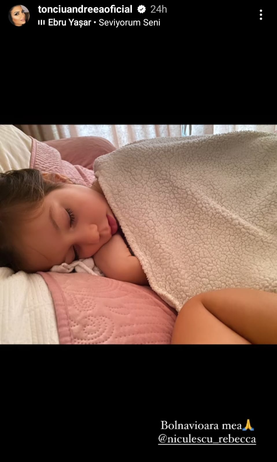 Andreea Tonciu își ține mereu fanii la curent cu tot ceea ce se petrece în viața ei. Așa s-a întâmplat și de data aceasta, însă veștile nu au fost deloc bune. Se pare că fiica ei, Rebeca, se confruntă cu probleme de sănătate. Bruneta a publicat o fotografie îngrijorătoare cu micuța pe rețelele de socializare, stând în pat. "Bolnăvioara mea", a scris Andreea Tonciu în dreptul fotografiei cu fiica ei.
