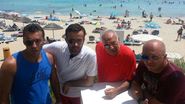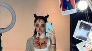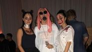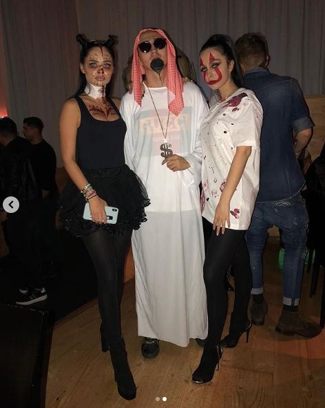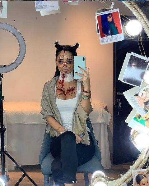Dana a fost pictată pe frunte, pe naş şi pe obraji cu diverse desene, dar nu au scăpat nici sânii. Machiajul a fost unul horror, pentru că pe gât s-a desenat un bandaj din care curgea sânge.( vezi cum s-a distrat Dana în vacanţa din insula Mykonos)