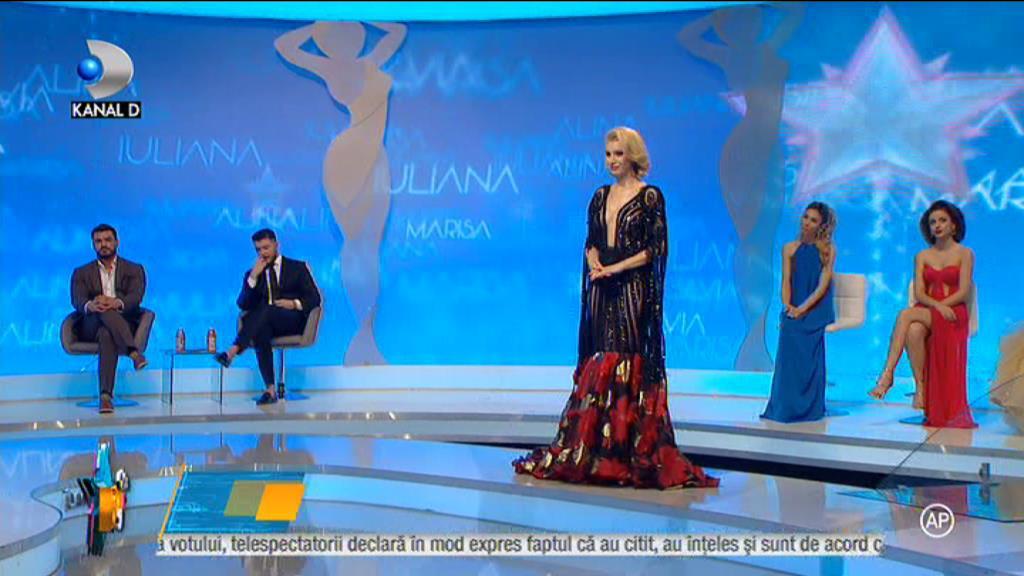 "Fata care paraseste competitia in cea de-a doua etapa eliminatorie are culoarea verde, cu un procentaj de 21,7% este Marisa", a spus Ilinca Vandici.