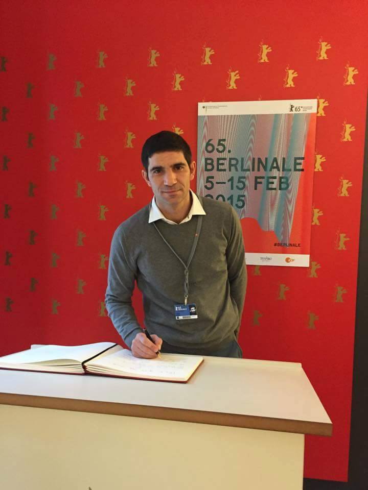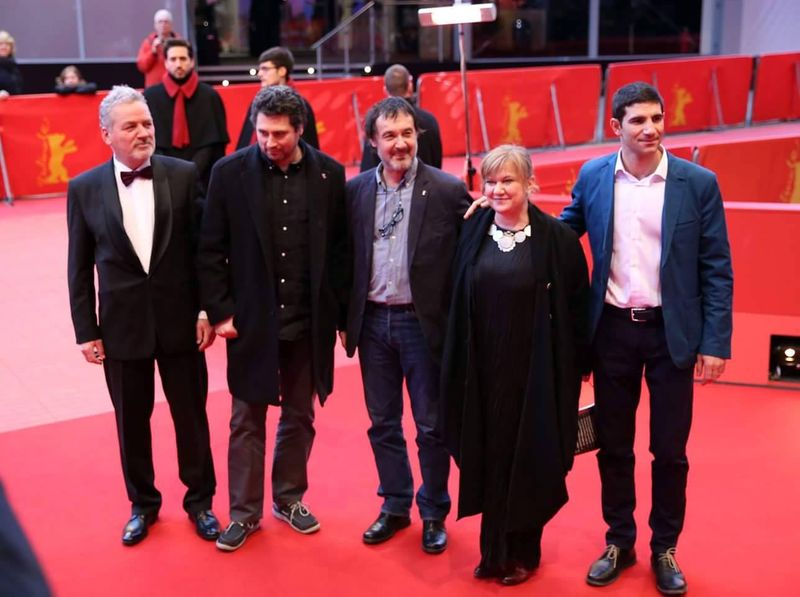 Pe scena (in dreapta), alaturi de colegii din "Aferim!", filmul premiat la BerlinPe scena (in dreapta), alaturi de colegii din „Aferim!”, filmul premiat la Berlin