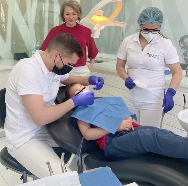 Însă, după ce a plâns, după ce s-a împotrivit să intre în cabinetul medicului, în cele din urmă, cu răbdare, dar și cu ajutorul personalului clinicii, Vladimir a fost convins să se așeze pe scaunul stomatologului.