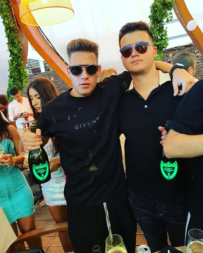 Angelo Borcea ține o sticlă în mâna dreaptă, în timp ce cu stânga și-a luat amicul pe după umeri. „Invincibil”, a postat fiul lui Cristi Borcea. „Ca de obicei”, a glumit o amică, care s-a referit la faptul că Angelo are o sticlă în mână. „Oricine iubește o sticlă nerușinată sticlă de Dom Perignon”, a postat un alt prieten al lui Angelo, acesta din urmă răspunzând cu mai multe emoticoane vesele.