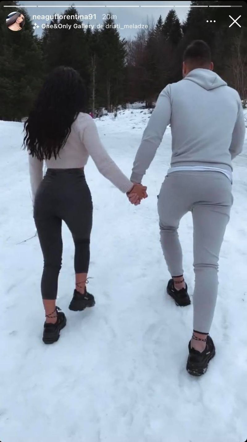 Cei doi s-au fotografiat cu spatele, ținându-se de mână, într-un cadru alb, de poveste. Cei doi se află cel mai probabil într-o vacanță la munte. (Citește AICI cum a reacționat Florentina după despărțirea de Livian: „Când este timpul sa pleci…”)