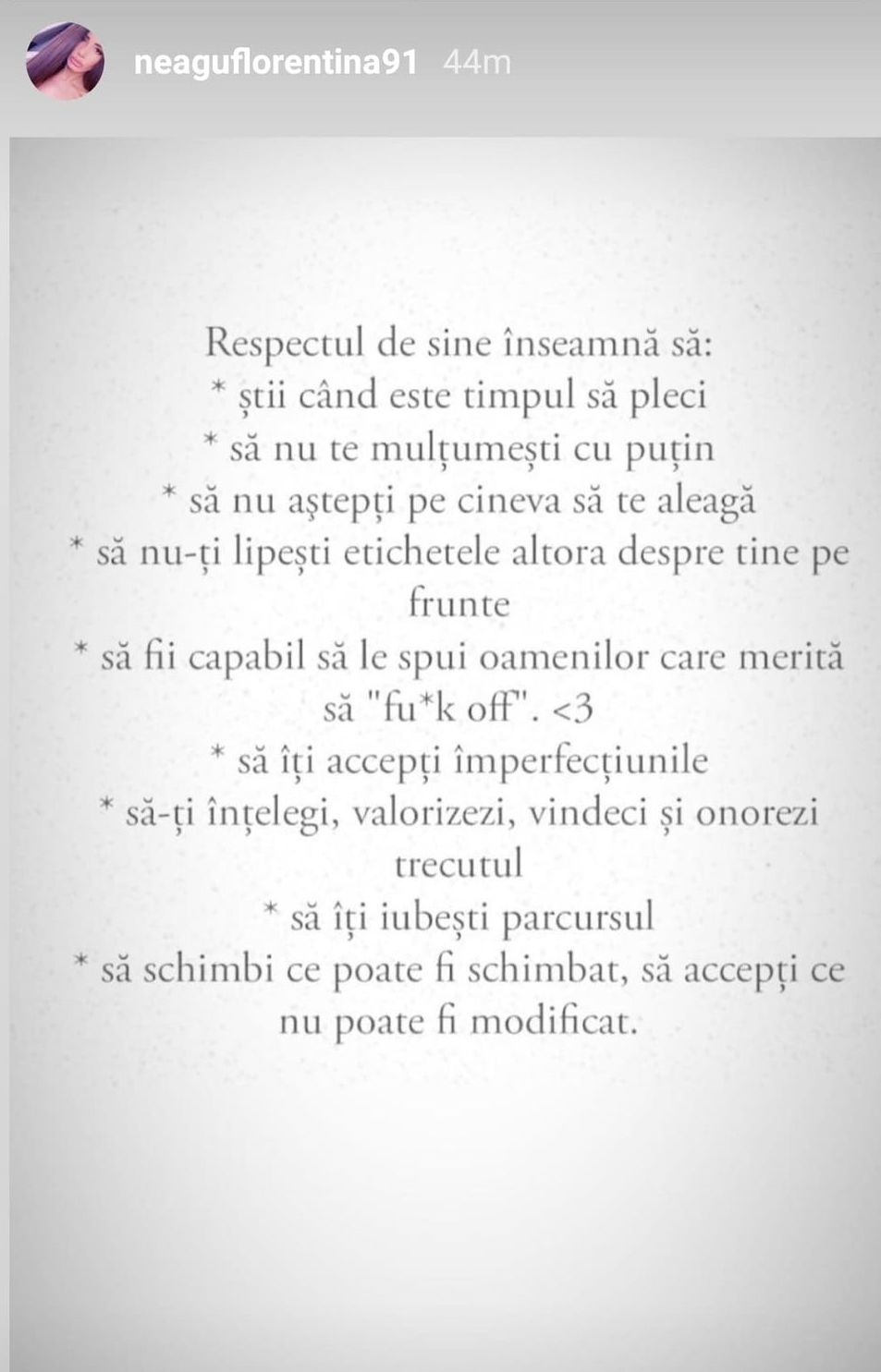 La scurt timp după ce Livian a postat mesajul, Florentina a ripostat și a transmis și ea un mesaj printr-o postare pe rețelele de socializare.