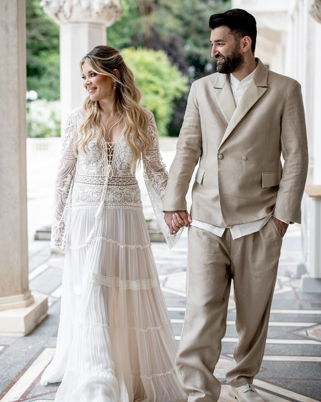 Gina Pistol a strălucit în rochia de mireasă purtată la cununia civilă. Pentru acest moment, prezentatoarea a ales o ținută foarte rafinată, care s-a potrivit perfect cu costumul pe care Smiley la purtat.