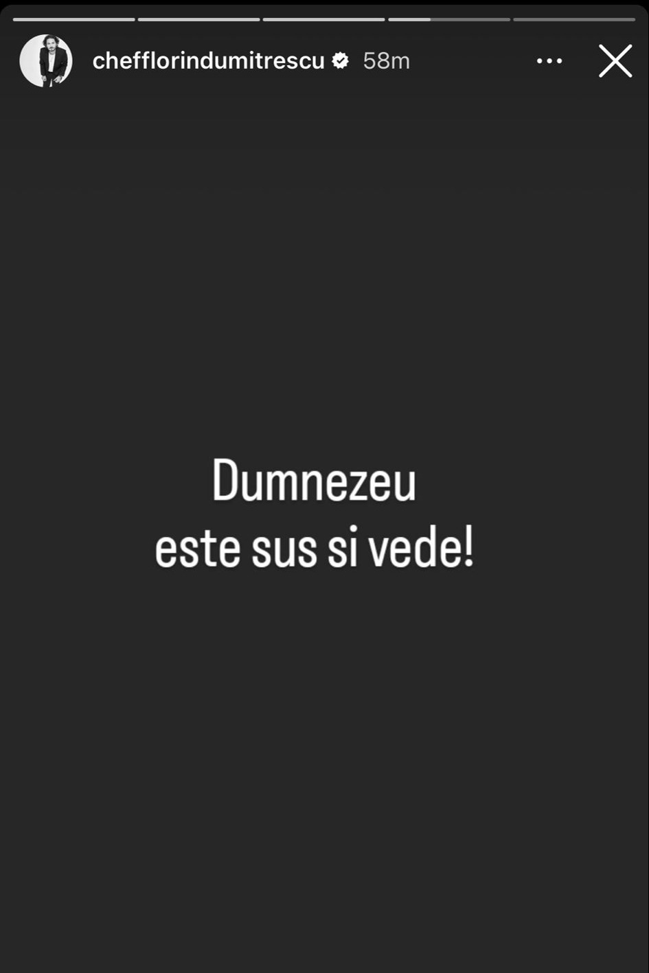 „Dumnezeu e sus și vede!”, a fost mesajul postat de Florin Dumitrescu.