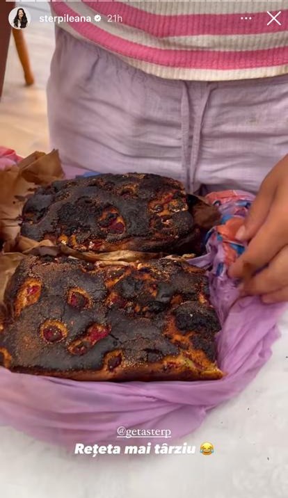 Geta Sterp: „Sunt curioasă câți și câte o să cereți rețeta. Filmează rezultatul. Nu, că l-am băgat să-l arunc. Așa e rețeta, e cu negreală pe deasupra, mac și foiță de aur neagră.”