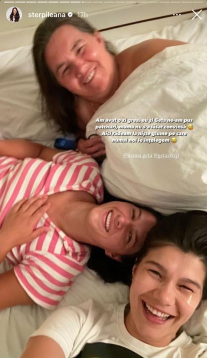 „Am avut o zi grea. Eu și Geta ne-am pus patchuri, mama nu s-a lăsat convinsă. Aici râdeam la niște glume pe care numai noi le înțelegem.”, a mai spus Ileana în mediul online.