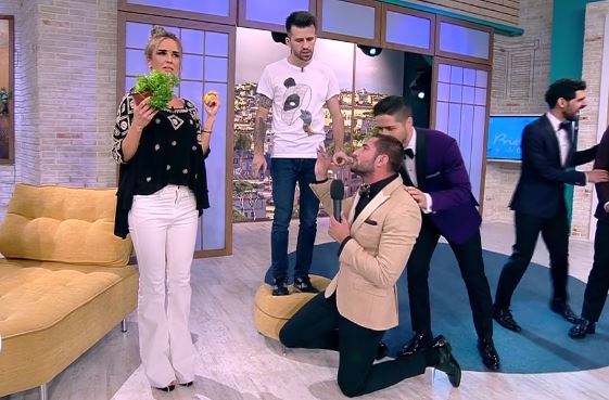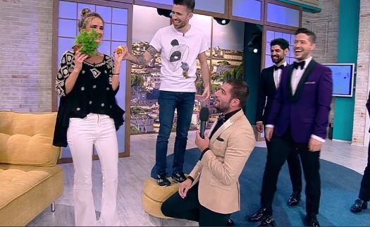 Diana Munteanu a fost ceruta in casatorie, in emisiunea de vineri dimineata, de catre fostul iubit al Denisei de la Bambi. Totul a fost o gluma, insa Catalin Cazacu a fost foarte credibil, ba chiar a cazut la picioarele blondinei.