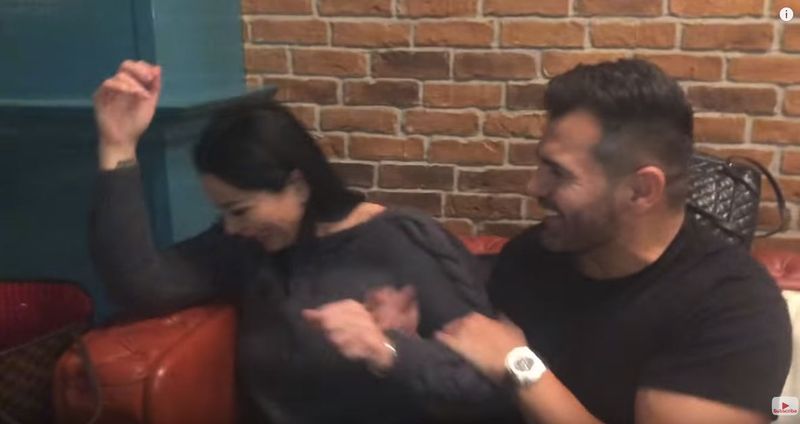 Iar cum Brigitte tot încerca să se îndepărteze de Florin Pastramă, deși era încolțită, acesta a prins-o de braț pentru ca vedeta TV să nu poată să se miște de lângă el. ”Terminați, că va crede lumea”, spunea, la un moment dat, încercând să își păstreze zâmbetul pe buze, dar evident disperată, Brigitte Sfăt.