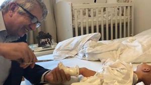Lucian Duță, fost șef al Casei Naționale de Asigurări de Sănătate, a publicat fotografii recente cu medicul Gheorghe Burnei în timp ce pune în gips piciorul unui nou-născut.