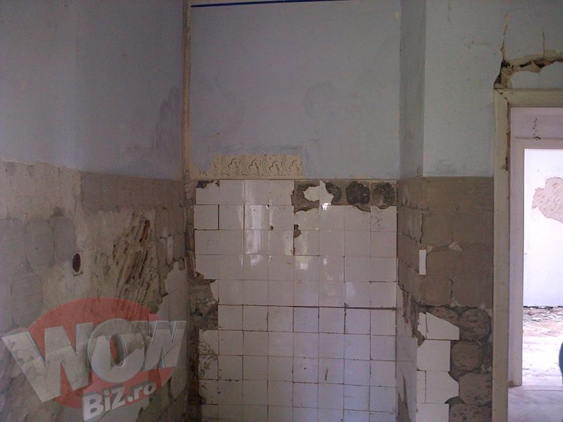 In bucatarie si bai au mai ramas bucati din gresie si faiantaIn bucatarie si bai au mai ramas bucati din gresie si faianta