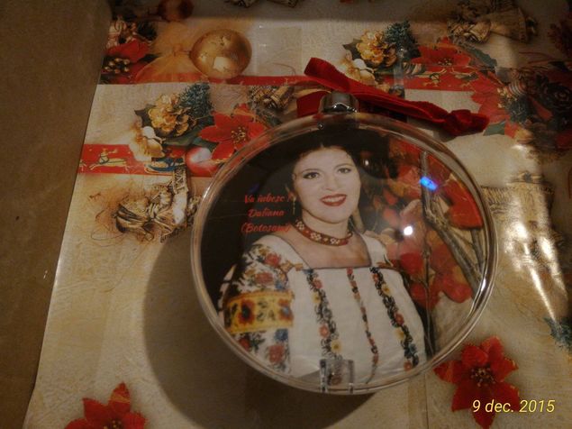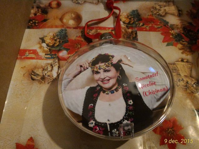 "Astăzi am primit cel mai frumos cadou de la fanii mei dragi, care au "complotat" să îmi facă această frumoasă surpriză. Iniţial nu am vrut să iau brad, dar, văzând globuleţele acestea... cum aş putea să nu iau? Mulţumesc Dana, Vlad, Radu, Mari, Mihaela din Prahova, Mihaela din Constanţa, Nicolae, Elena, Daliana, Adriana, Mihai şi Daniela! Vă iubesc!", a marturisit emotionata Irina Loghin, celebra solista de muzica populara. Marea artista a primit din partea fanilor globulete de brad personalizate, pe care fanii i-au dat dedicatii!