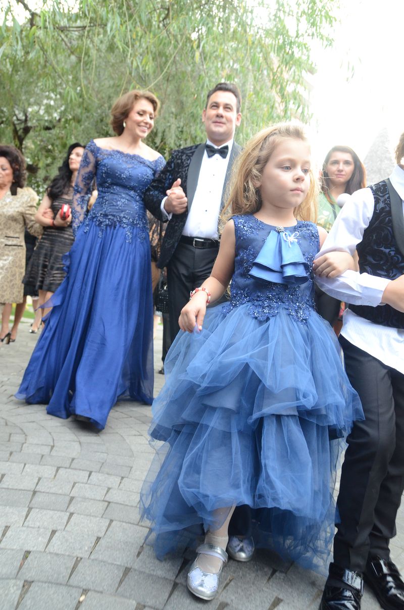 Maria a purtat o rochie albastra, de printesa si a atras atentia cu aspectul ei de papusa. Fetita satena cu parul lung si ochi verzi este un copil superb, parca scos din reclame.