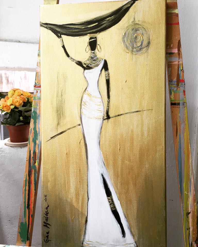 Gina picteaza tablouri pe care le scoate la vanzare prin licitatii online. Mai mult, ea si-a prezentat o parte din lucrari la cateva expozitii.
