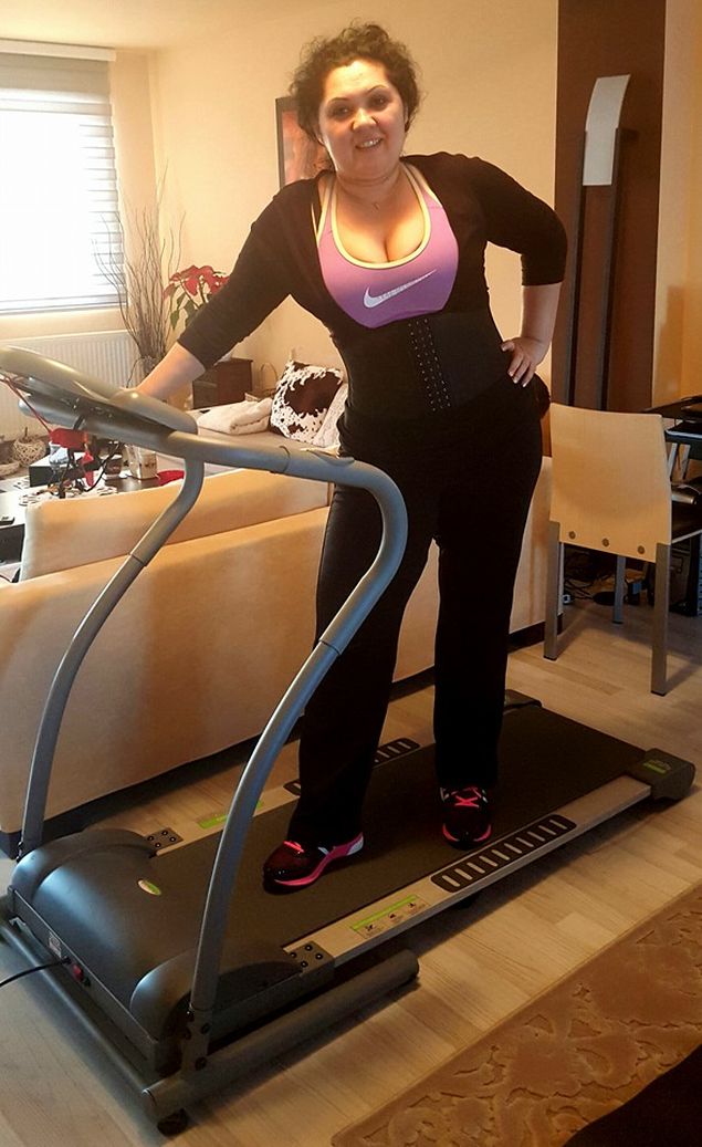 Minodora poarta corsetul si atunci cand face fitness la sala sau cand alearga pe banda, acasa.